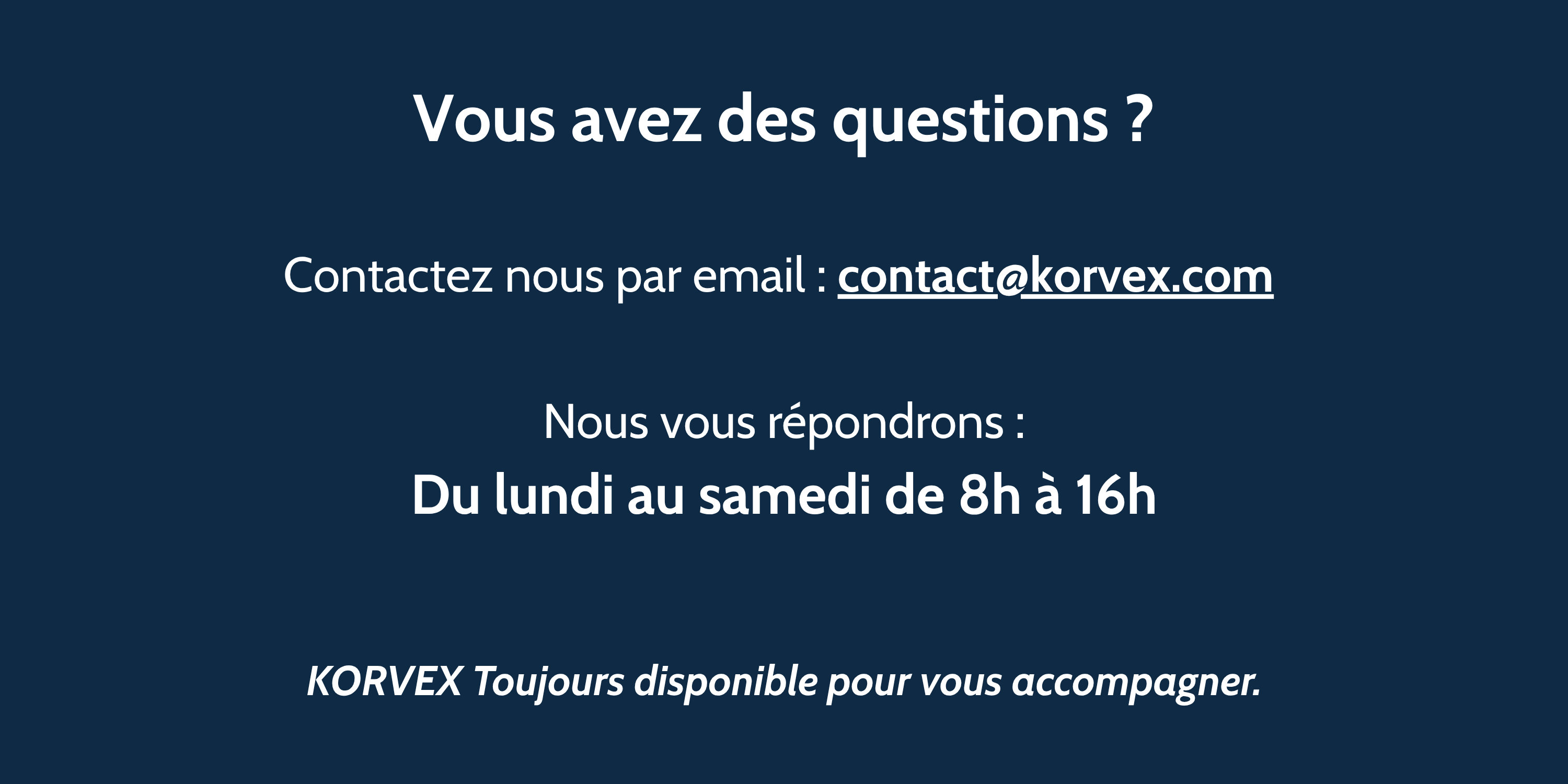 Vous avez une question sur votre commande, sur le choix de votre taille ou simplement envie d'en savoir plus sur KORVEX ? Notre équipe est disponible et vous répond rapidement.